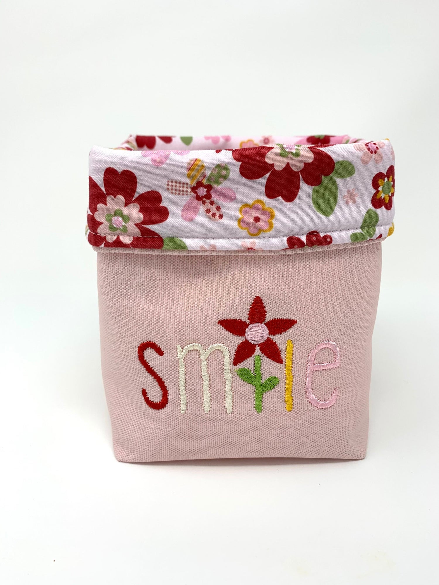 Fabric Bag, Basket, Reusable, Tissue Box Holder, Floral, Smile Basket, Red, Pink, Handmade